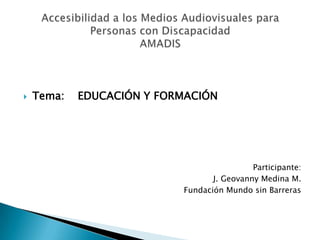 Este documento resume un taller sobre liderazgo y gestión de calidad en ONG para personas con discapacidad. Discutió el uso de tecnologías de la información y la comunicación (TIC) y e-learning para mejorar la educación inclusiva. También analizó los desafíos de accesibilidad web para personas con discapacidad en Ecuador y recomendó leyes para promover el derecho a la accesibilidad web para todos.