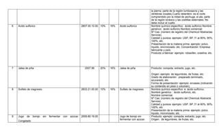 Este documento proporciona información sobre la clasificación arancelaria, descripciones, gravámenes arancelarios e IVA de 37 productos. Para cada producto, se especifica el código arancelario de 10 dígitos, la descripción arancelaria, la descripción mínima, la descripción técnica y comercial, y el tratamiento arancelario cuando las importaciones provienen de diferentes países. El documento también incluye información sobre la entidad a la que se debe acudir para solicitar el visto bueno y los porcentajes de gravamen arancelario