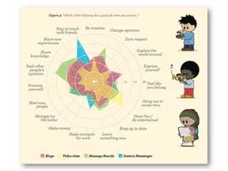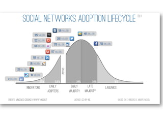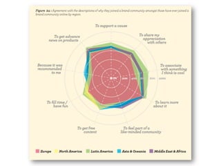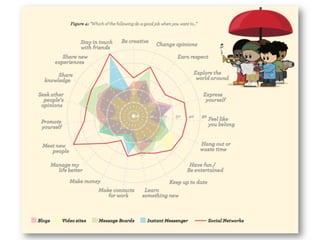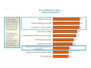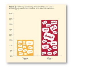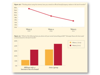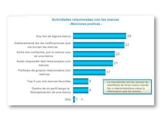 El documento presenta una serie de tendencias y conceptos relacionados con el marketing y la comunicación en la era digital. Describe cómo Internet ha facilitado que las personas se conecten y compartan información, dando más poder a los consumidores. También analiza el surgimiento de las redes sociales y cómo estas permiten que las marcas se socialicen y se comuniquen directamente con los clientes.
