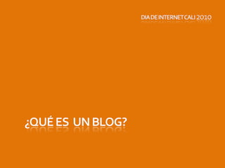 El documento presenta un taller sobre blogs, explicando qué son, su historia, características, tipos y ejemplos relevantes. Abarca la evolución de los blogs desde sus inicios en 1992, destacando su importancia en la comunicación social y su adaptación a nuevas tecnologías. También ofrece un decálogo para crear un blog exitoso, enfatizando elementos como diseño, contenido de calidad e interacción con redes sociales.