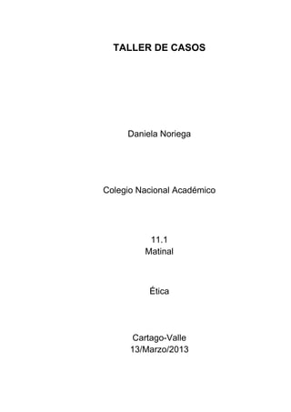 Este documento presenta un taller sobre ética profesional que incluye un caso sobre una estudiante llamada Paula. En el caso, los compañeros de Paula no prestaron atención a las instrucciones del ingeniero durante una práctica y causaron un problema, pero Paula fue respetuosa. El taller incluye preguntas sobre cómo manejaría el estudiante la situación de Paula, los valores y anti-valores presentes, y reflexiones sobre la responsabilidad y compromiso con la ética profesional.