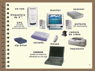 El documento presenta un programa de capacitación en computación. Explica las partes de un computador, incluido el hardware y software. También describe el sistema operativo Windows y aplicaciones comunes como navegadores web e Internet. Cubre temas como correo electrónico, redes sociales y seguridad informática.