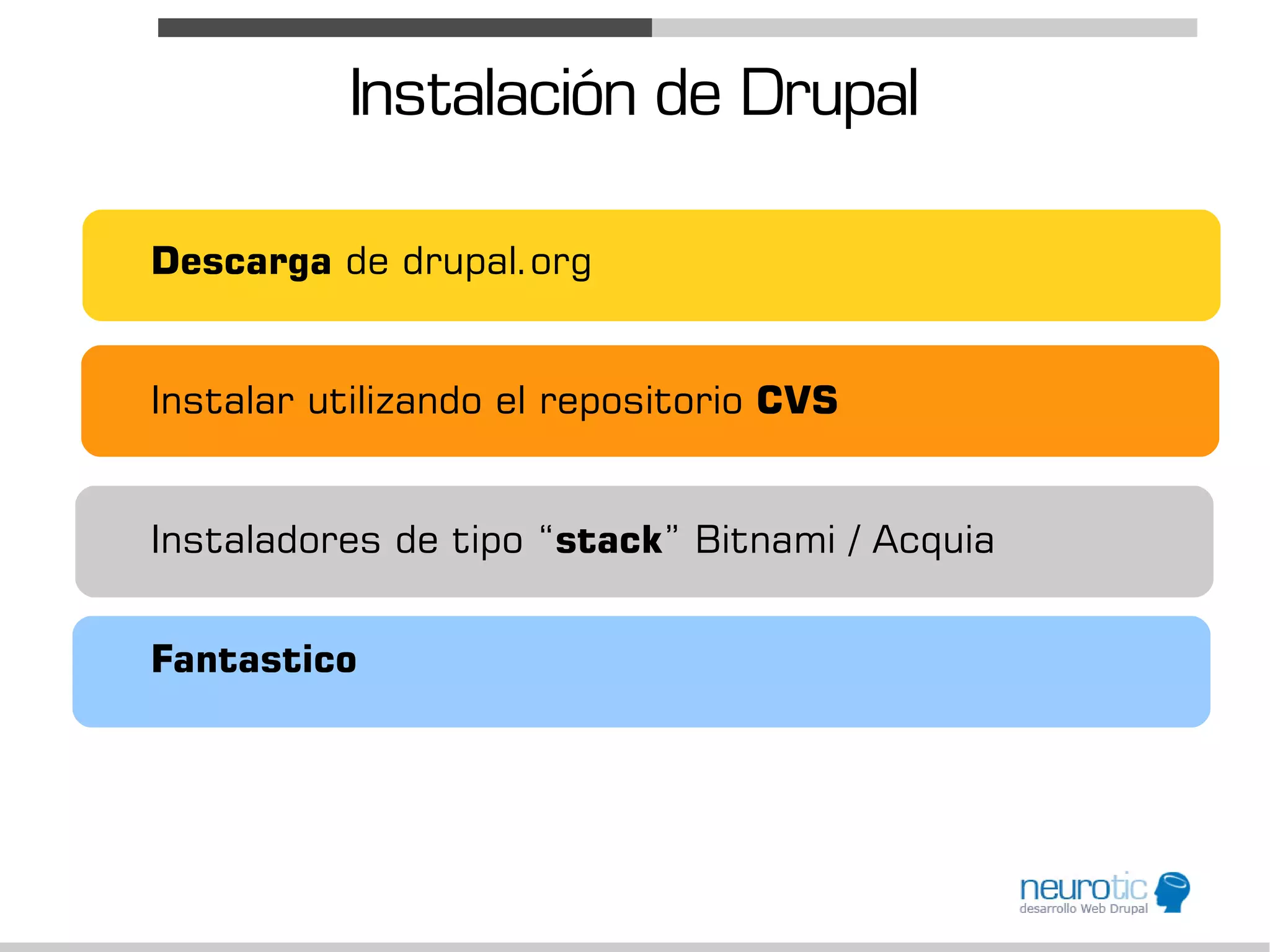 El documento proporciona instrucciones para instalar Drupal, incluyendo descargar el software, configurar la base de datos, y completar el proceso de instalación. También explica la estructura básica de directorios de Drupal y las funciones principales de administración como gestionar contenido, usuarios, y configurar el sitio.