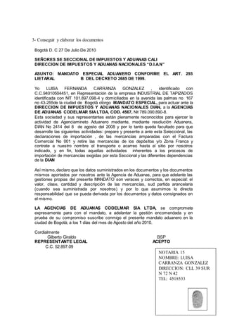 3. Se elaboran los documentos necesarios incluyendo el mandato especial aduanero y la garantía a favor de la nación por el valor CIF de la mercancía que será reembarcada.
