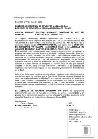 3. Se elabora un mandato especial aduanero y una carta dirigida a la DIAN para autorizar a Codel