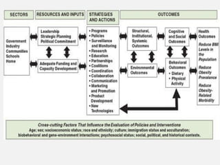 El documento presenta información sobre la obesidad en 10 secciones. Resume que la obesidad ha aumentado a nivel mundial, especialmente en niños y adultos jóvenes. Varios estudios destacan la importancia de controlar la obesidad desde edades tempranas a través de dietas saludables y ejercicio físico para prevenir complicaciones a largo plazo. La genética también juega un papel en la predisposición a la obesidad según las condiciones ambientales.