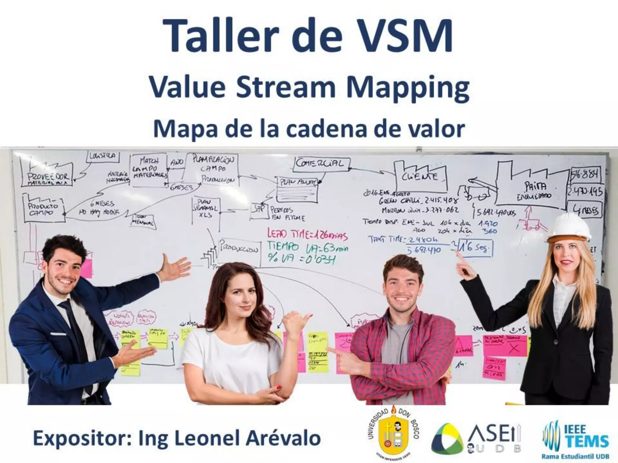 El documento describe la importancia y metodología del Value Stream Mapping (VSM) para identificar y eliminar desperdicios en procesos productivos. Detalla aspectos clave como la definición de mapas de la cadena de valor, los tipos de desperdicios y la aplicación práctica de VSM en diferentes sectores. También menciona la necesidad de una planificación adecuada y el enfoque en la mejora continua para maximizar el valor para el cliente.