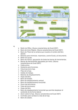 Este documento proporciona instrucciones sobre cómo utilizar Microsoft Excel. Excel es una hoja de cálculo que permite realizar cálculos matemáticos y estadísticos. El documento explica las principales características de Excel como las barras de herramientas, filas, columnas, celdas, hojas y funciones. También describe cómo insertar y eliminar filas y columnas, cambiar el nombre y color de las hojas, copiar hojas, seleccionar rangos de celdas y ordenar datos. El objetivo es proporcionar una guía