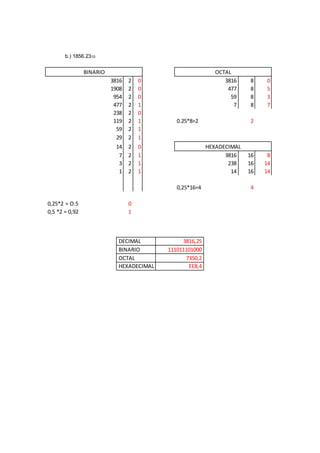 1. Se piden conversiones entre diferentes bases numéricas como binario, octal y hexadecimal.