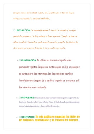 Este documento presenta las normas de la Icontec para trabajos escritos. Explica las normas para la presentación de cubierta, contenido, introducción, capítulos, conclusiones y bibliografía. Detalla aspectos como tipos de letra, tamaños, colores, alineaciones y espacios entre párrafos. Además, incluye un ejemplo de nomenclatura para la estructuración de tesis y trabajos de investigación.