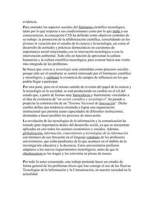 Este documento resume los principales puntos de un artículo sobre la incorporación de las nuevas tecnologías de la información y la comunicación (NTIC) en el aula. El autor nota que aunque ha habido un silencio sobre este tema en los últimos meses, las NTIC siguen evolucionando rápidamente y son cada vez más importantes en la sociedad. Sin embargo, el sistema educativo se está insertando en esta corriente de forma lenta, lo que es preocupante dado lo rápido que cambia la sociedad actualmente debido a la tecnología.