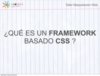 Este documento presenta una introducción al uso del framework de maquetación Blueprint CSS. Explica conceptos básicos como qué es un framework basado en CSS, sus ventajas y algunas opciones populares. Luego se enfoca en Blueprint CSS, discutiendo por qué es una buena opción, cómo empezar a usarlo insertando los archivos CSS en el HTML, y presentando algunas de sus clases básicas como .container, .span y sus variantes para agregar y quitar columnas. El objetivo general es proporcionar una introducción práctica para empezar a utilizar Blueprint