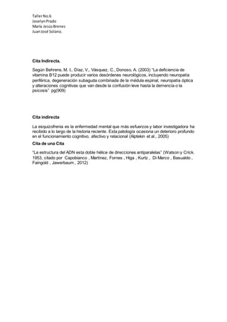 Este documento presenta una lista de autores y fuentes relacionadas con temas de medicina personalizada, deficiencia de vitamina B12, epigenética, esquizofrenia y estructura del ADN. Incluye citas directas e indirectas de varios artículos y libros sobre estos temas.