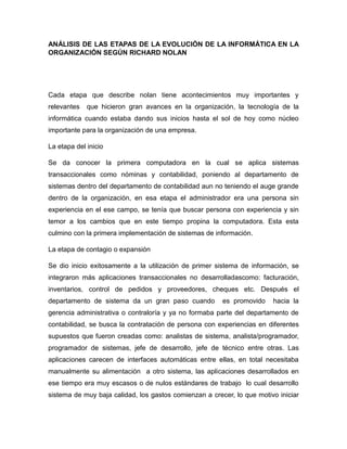 El documento describe las tres etapas de la evolución tecnológica: 1) La era de las herramientas, cuando los humanos comenzaron a usar herramientas para aumentar su eficiencia; 2) La era de las máquinas, cuando se crearon máquinas alimentadas por energía humana u animal para reemplazar el esfuerzo físico; y 3) La era de los autómatas, cuando las máquinas eliminaron el control humano a través de algoritmos automáticos.
