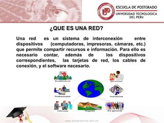 Una red permite compartir recursos e información entre dispositivos como computadoras e impresoras mediante la interconexión de estos a través de tarjetas de red, cables y software. Las redes afectan nuestra vida diaria a través de medios de comunicación como mensajería instantánea y blogs, y permiten la colaboración y el aprendizaje compartido. Los dispositivos como switches y puntos de acceso inalámbricos facilitan la conexión entre dispositivos en una red.