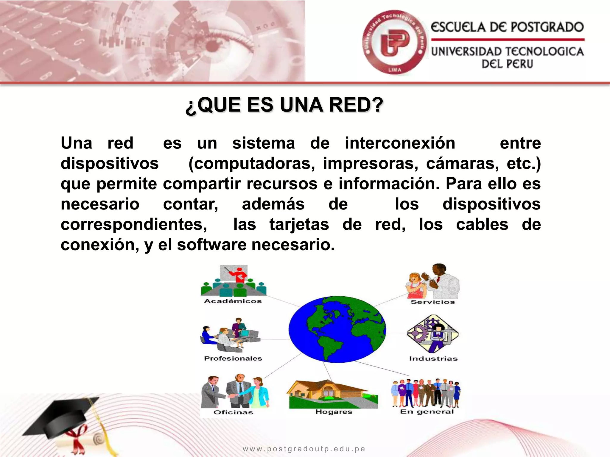 Una red permite compartir recursos e información entre dispositivos como computadoras e impresoras mediante la interconexión de estos a través de tarjetas de red, cables y software. Las redes afectan nuestra vida diaria a través de medios de comunicación como mensajería instantánea y blogs, y permiten la colaboración y el aprendizaje compartido. Los dispositivos como switches y puntos de acceso inalámbricos facilitan la conexión entre dispositivos en una red.