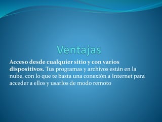 Este documento describe una plataforma virtual en la nube que permite ejecutar todo tipo de tráfico cliente-servidor de forma virtual, incluyendo sistemas operativos, aplicaciones y máquinas virtuales. La plataforma reemplaza automáticamente cualquier segmento o sistema completo que resulte dañado por malware, ataques o errores humanos, de manera transparente sin afectar los servicios o aplicaciones.