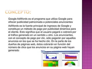 Google AdWords es el programa de publicidad patrocinada de Google que permite a los anunciantes pagar solo cuando se hace clic en sus anuncios, proporcionando un método de pago dinámico. Los anunciantes solo pagan por los clics en sus anuncios, mientras que los propietarios de páginas web reciben pagos basados en la cantidad de clics generados por los anuncios en sus sitios.