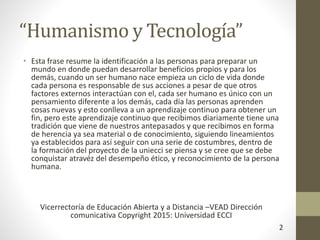 Este documento discute la importancia de los valores humanos y la tecnología. Propone que cada persona es única y responsable de sus propias acciones. También sugiere que la Universidad ECCI debe enfatizar valores como el respeto, la prudencia y la ayuda a otros para crear una sociedad mejor.