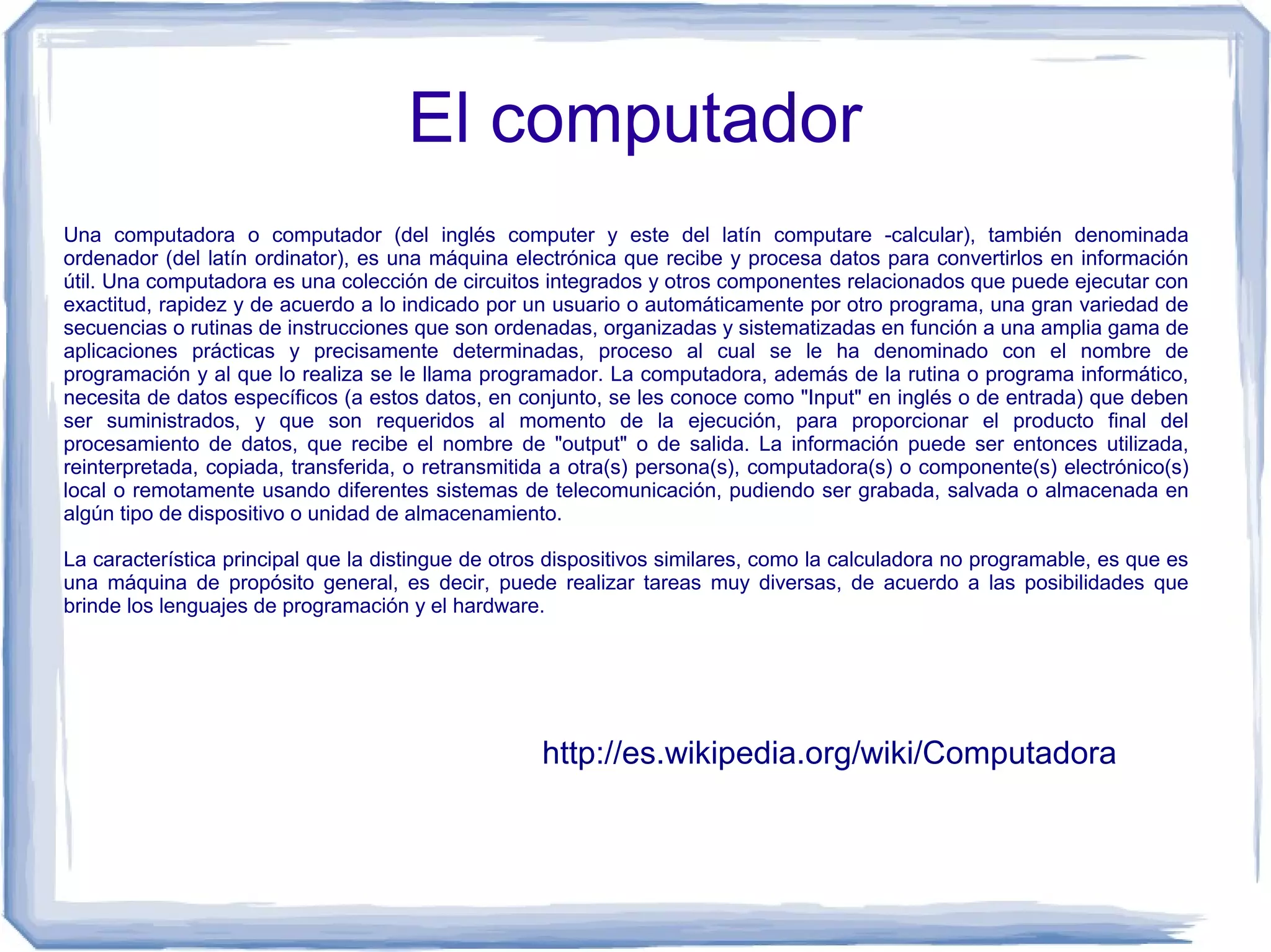 El documento proporciona una introducción al software libre y propietario. Explica que el software libre permite a los usuarios ejecutar, copiar, estudiar, modificar y mejorar el software, mientras que el software propietario limita estas libertades. También describe brevemente el origen del movimiento de software libre con Richard Stallman y la Free Software Foundation, que promueven el desarrollo y uso de software que respete las libertades de los usuarios.