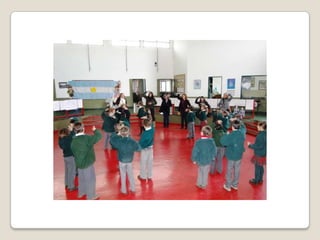 El documento presenta resúmenes de varios talleres institucionales del año 2011 en el Colegio San Ignacio, incluyendo talleres sobre el cuerpo humano, filosofía, periodismo, escritura, matemáticas, coro litúrgico y batucada.