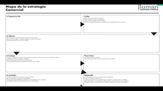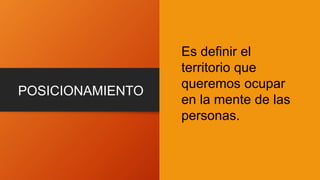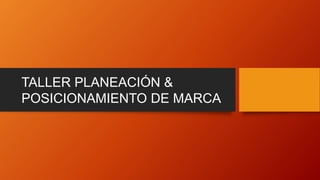 El documento presenta una guía para el posicionamiento y planeación estratégica de marcas. Explica que el posicionamiento es definir el territorio que se quiere ocupar en la mente de las personas y es la base que guía las acciones de la compañía. Luego, propone realizar un análisis del entorno competitivo, definir el público objetivo, identificar sus dolores y motivaciones, y establecer los beneficios y razones para creer de la marca. Finalmente, sugiere desarrollar un plan de acción de negocios y comunicación