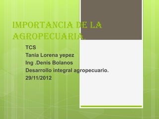 La agricultura orgánica promueve la salud de los sistemas agrícolas y la biodiversidad mediante métodos agroecológicos y mecánicos en lugar de materiales sintéticos. Utiliza abonos orgánicos como el compost y estiércol animal, rotación de cultivos, y métodos naturales de control de plagas en lugar de agroquímicos. Aunque genera empleo rural y conserva el suelo, la agricultura orgánica enfrenta problemas como la tenencia de la tierra, la financiación y las políticas que fav