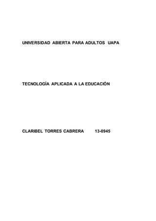 Este documento describe la tecnología aplicada a la educación. Explica que la tecnología educativa ha evolucionado a lo largo de los años, con nuevas herramientas como películas, mapas y computadoras que hacen el aprendizaje más interactivo. También discute los desafíos de la educación en la sociedad de la información, señalando que aunque la tecnología ha avanzado rápidamente, los cambios sociales subyacentes son los que permiten aprovechar esas nuevas tecnologías. Finalmente, define