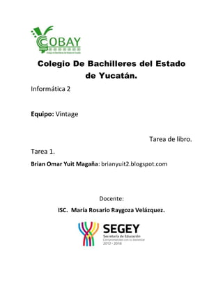 Este documento presenta varias actividades de una tarea de un libro de informática. La primera actividad pide investigar ejemplos de software educativo y describir su función. Se proporcionan ejemplos como Zinjal para programación, Aulaclic para cursos en línea y Formularios de Google. La segunda actividad pide investigar software educativo para asignaturas como matemáticas, química e inglés. La tercera actividad describe tipos de software educ