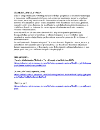 El documento describe cómo las Tecnologías de la Información y la Comunicación (TIC) han impactado positivamente a la sociedad. Explica que las TIC ahora son parte integral del sistema educativo y han mejorado la enseñanza para personas con discapacidad. Además, las TIC han transformado la sociedad del conocimiento y han generado un cambio en las prácticas pedagógicas de los docentes y el desempeño de los estudiantes.