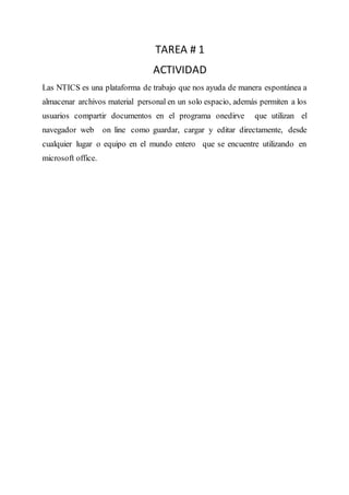 Las NTICS es una plataforma que permite a los usuarios almacenar y compartir archivos personales en un solo espacio en línea, así como editar documentos directamente desde cualquier lugar utilizando un navegador web.
