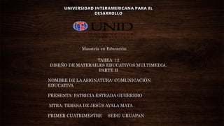Este documento presenta varias herramientas multimedia que pueden utilizarse para mejorar la comprensión lectora en los estudiantes. Se describen cómo las videoconferencias, blogs, foros, webquest y actividades educativas pueden usarse para que los estudiantes compartan información, reciban comentarios, investiguen de manera autónoma y aprendan de una manera divertida sobre la comprensión lectora. El objetivo general es establecer diferentes formas de comunicación y proporcionar recursos para que tanto maestros como estudiantes exploren nuevas estrategias para
