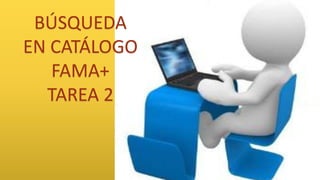 Este documento describe las instrucciones para realizar una búsqueda en el catálogo Fama+ sobre la aplicación de la fisioterapia en la tercera edad, utilizando operadores booleanos en la estrategia de búsqueda. Se deben importar 5 monografías a RefWorks y crear una bibliografía en formato Uniform.