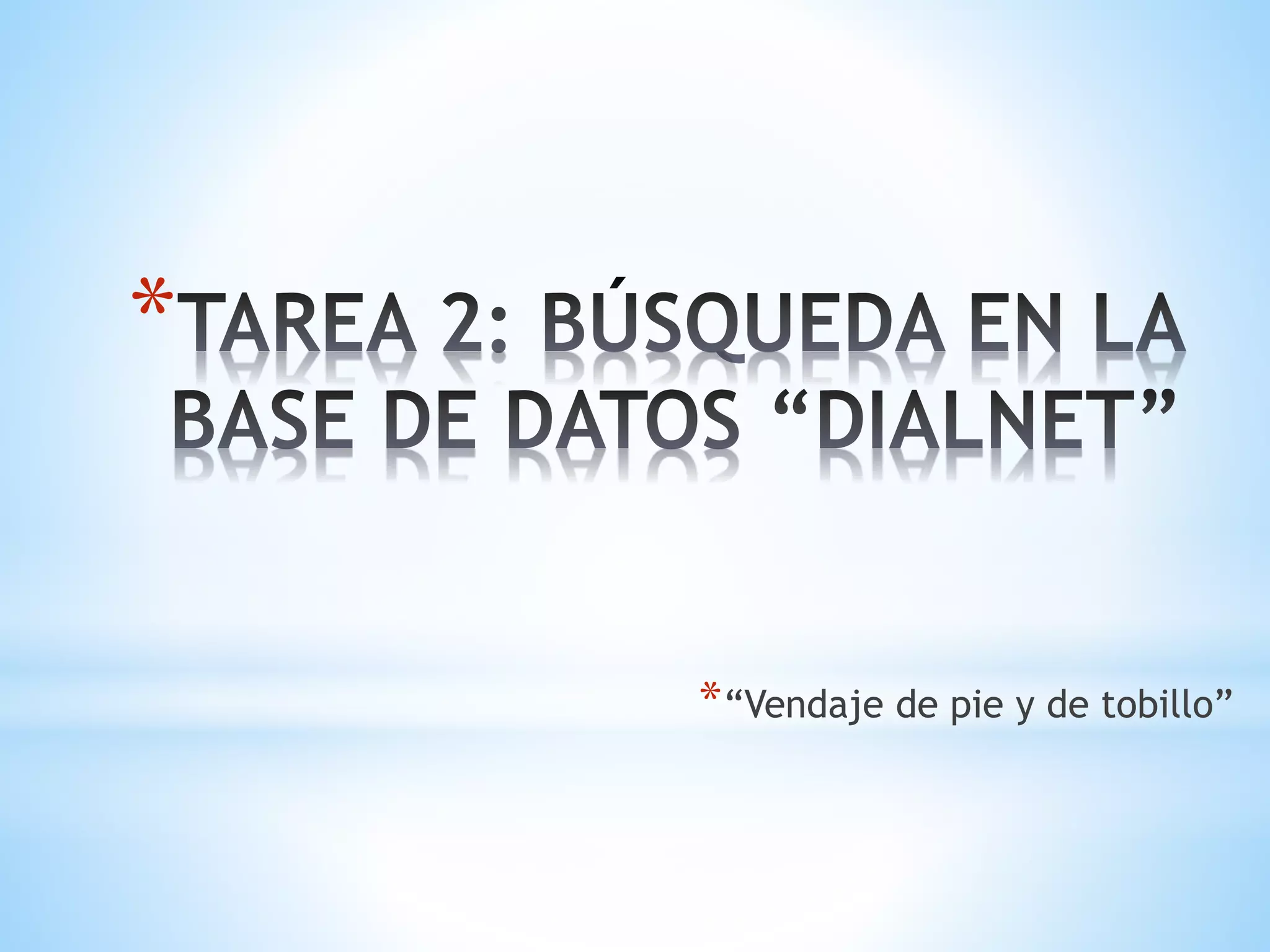 El documento describe los pasos para realizar una búsqueda en la biblioteca de centros de salud de la US y en DIALNET para encontrar información sobre vendajes para el pie y el tobillo. Incluye los pasos de acceder a la cuenta de DIALNET, realizar una búsqueda inicial, filtrar los resultados a artículos de revista, seleccionar un artículo de texto completo, y luego acceder a la versión electrónica del artículo a través de ScienceDirect.