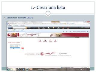 El documento proporciona un procedimiento en 9 pasos para completar una tarea de seminario sobre competencias informacionales. Los pasos incluyen crear una lista en una cuenta, buscar 5 monografías sobre un tema de interés y añadirlas a la lista, completar las 5 monografías y exportarlas a Refworks, importar la lista a una carpeta en Refworks, generar la bibliografía en formato Uniform, y publicar la bibliografía en un blog y en SlideShare.