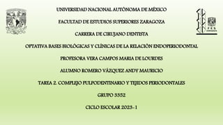 Este documento describe las diferentes estructuras del complejo pulpodentinal, los tejidos periodontales y el hueso alveolar. Se divide en varias secciones que detallan las zonas topográficas de la pulpa, los componentes del periodonto, las macroestructuras del periodonto y las características de los tejidos de soporte como el ligamento periodontal, el cemento radicular y el hueso alveolar.