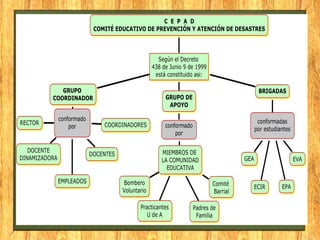 El documento aborda la mejora de la cultura de prevención de emergencias y atención de desastres en instituciones educativas, proponiendo una serie de acciones preventivas y protocolos de evacuación. Se enfatiza la importancia de la capacitación continua y la responsabilidad compartida entre estudiantes, docentes y directivos para asegurar un entorno seguro. Además, se destaca la necesidad de mejorar la señalización y los sistemas de comunicación durante las emergencias.