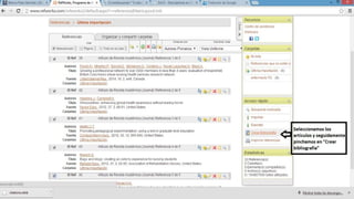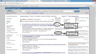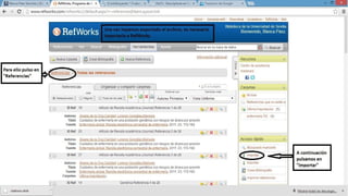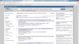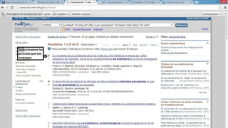 Este documento presenta 5 referencias bibliográficas sobre el uso de wikis y redes sociales en la educación de enfermería. Las referencias describen cómo wikis han sido usados para aumentar la conciencia global de salud, promover la experimentación pedagógica, y crear experiencias de aprendizaje para estudiantes. También se discute el desarrollo de prácticas de liderazgo a través de una comunidad de aprendizaje en línea. El documento luego menciona que DeCS es un programa que permite traducir términos
