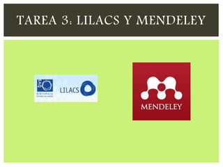 Este documento describe cómo realizar búsquedas en la base de datos LILACS y agregar los resultados relevantes a Mendeley para generar citas y bibliografías en formato Vancouver. Explica los pasos de buscar en LILACS, filtrar los resultados, seleccionar documentos, exportar la selección e importarlos a una carpeta en Mendeley para copiar las citas y bibliografía en Word.