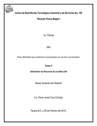 Este documento describe los principales componentes de una red local (LAN), incluyendo servidores, estaciones de trabajo, tarjetas de interfaz de red, cableado y recursos compartidos. También explica otros elementos como switches, VLANs y WANs, señalando sus características y funciones.