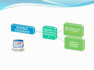 Este documento compara diferentes aplicaciones de Google como Gmail, Google Calendar, Google Docs, Google Reader, Google+ y Google Hangouts. Resume las ventajas y desventajas de cada aplicación de manera breve. Por ejemplo, Gmail permite comentar eventos pero requiere una conexión a Internet, mientras que Google Docs permite crear documentos en línea de forma automática pero también requiere una conexión y una cuenta de Gmail.