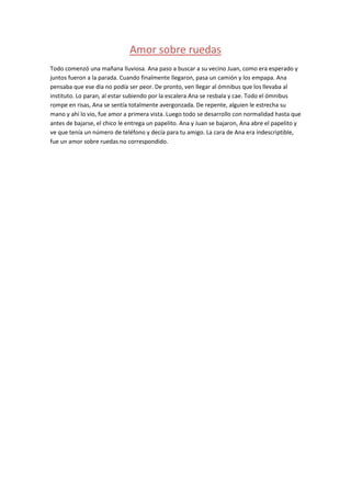 Ana pasó a buscar a su vecino Juan para ir juntos a la parada del ómnibus a la escuela. Cuando subieron al ómnibus, Ana resbaló y cayó, avergonzándola. Un chico desconocido la ayudó y se enamoraron a primera vista, aunque al final él solo quería darle su número de teléfono a Juan y no a Ana.