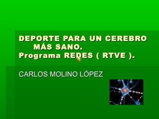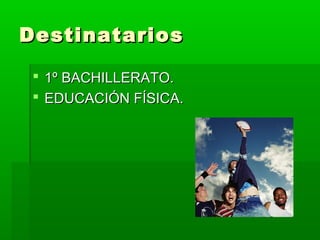 El documento describe un programa para estudiantes de primer año de bachillerato sobre los efectos positivos del ejercicio físico y una buena nutrición en el cerebro. El programa se centra en cómo la actividad física y la proteína BNDF promueven el crecimiento neuronal, y consta de cuatro sesiones para demostrar los beneficios del ejercicio de fuerza, una dieta saludable, el control de la respiración y las técnicas de relajación para el cerebro y la salud general.
