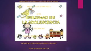 Este documento discute el problema de los embarazos en la adolescencia en México. México tiene la tasa más alta de embarazos adolescentes entre los países de la OCDE. Cada año, casi medio millón de adolescentes mexicanas menores de 19 años dan a luz. Los embarazos adolescentes conllevan mayores riesgos para la salud de las madres y los bebés. Además, los embarazos en la adolescencia reducen las oportunidades educativas y económicas para las jóvenes.