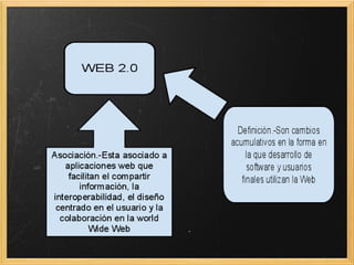 El documento habla sobre las páginas web. Existen dos tipos principales de páginas web: estáticas y dinámicas. Las páginas estáticas muestran contenido fijo mientras que las dinámicas muestran contenido que cambia según la interacción del usuario. La Web 2.0 se refiere a cambios en cómo los usuarios y desarrolladores usan la web, permitiendo más interacción e inteligencia colectiva.
