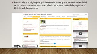 El documento resume la tarea de buscar las revistas de pediatría más importantes en 2016 según dos bases de datos: Journal Citation Reports (JCR) y SCImago Journal & Country Rank (SJR). En JCR, la revista Pediatrics ocupó el primer lugar con el mayor número de citas, un factor de impacto de 5.705, e índice de inmediatez de 1,036. En SJR se encontraron 7 revistas españolas, encabezadas por Anales de Pediatría, la cual tuvo un SJR de X y un índice H de Y en 2016
