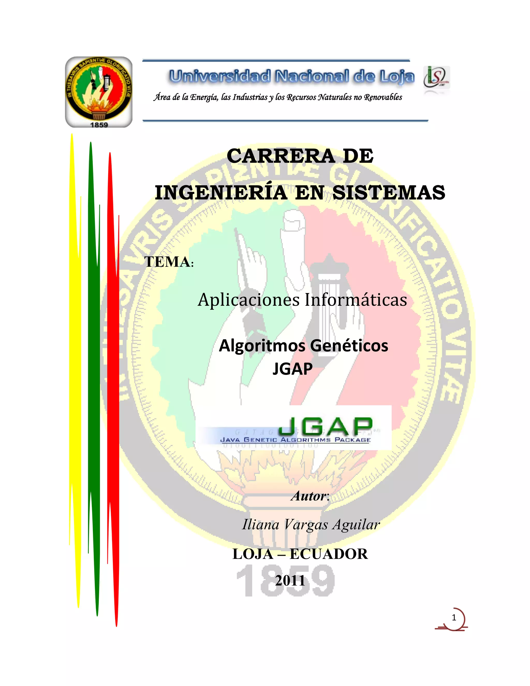 Este documento describe cómo implementar un algoritmo genético usando el framework JGAP para resolver el problema de descomponer un monto de dinero en la menor cantidad de monedas posible. Explica cómo modelar el problema, crear una función de aptitud, configurar parámetros como el tamaño de la población y número de generaciones, y ejecutar el algoritmo genético para encontrar la solución óptima.