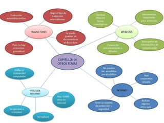 Este documento presenta un resumen de los capítulos de un libro virtual sobre el uso de Internet y nuevas tecnologías. Los objetivos son utilizar herramientas de Google Docs de forma conjunta, resumir cada capítulo del libro, y crear una presentación en Google Docs para familiarizarse con el programa. Se concluye que el trabajo en equipo con el contenido del libro les ayudó a conocer sobre virus, páginas web, tecnologías emergentes y programas educativos.