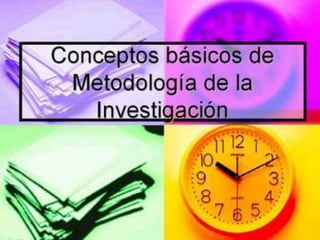 Este documento presenta una introducción a la metodología de investigación. Explica que el objetivo es desarrollar competencias para comprender la construcción crítica del conocimiento en su contexto. Luego, resume los temas principales que se abordarán, incluyendo la realidad, el sujeto, el conocimiento, la ciencia, la investigación, el método y la metodología. Finalmente, ofrece definiciones y ejemplos de estos conceptos clave para guiar el estudio de la metodología de investigación.