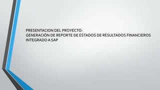 El documento presenta un proyecto para generar de manera automática reportes de estados de resultados financieros para una cadena hotelera en Puebla. Actualmente, los reportes se generan de forma manual en Excel. El objetivo es mejorar los procesos de generación de información y automatizar la creación de los reportes para contar con datos precisos y oportunos que apoyen la toma de decisiones. Se proponen tres soluciones posibles de baja, mediana y alta complejidad.